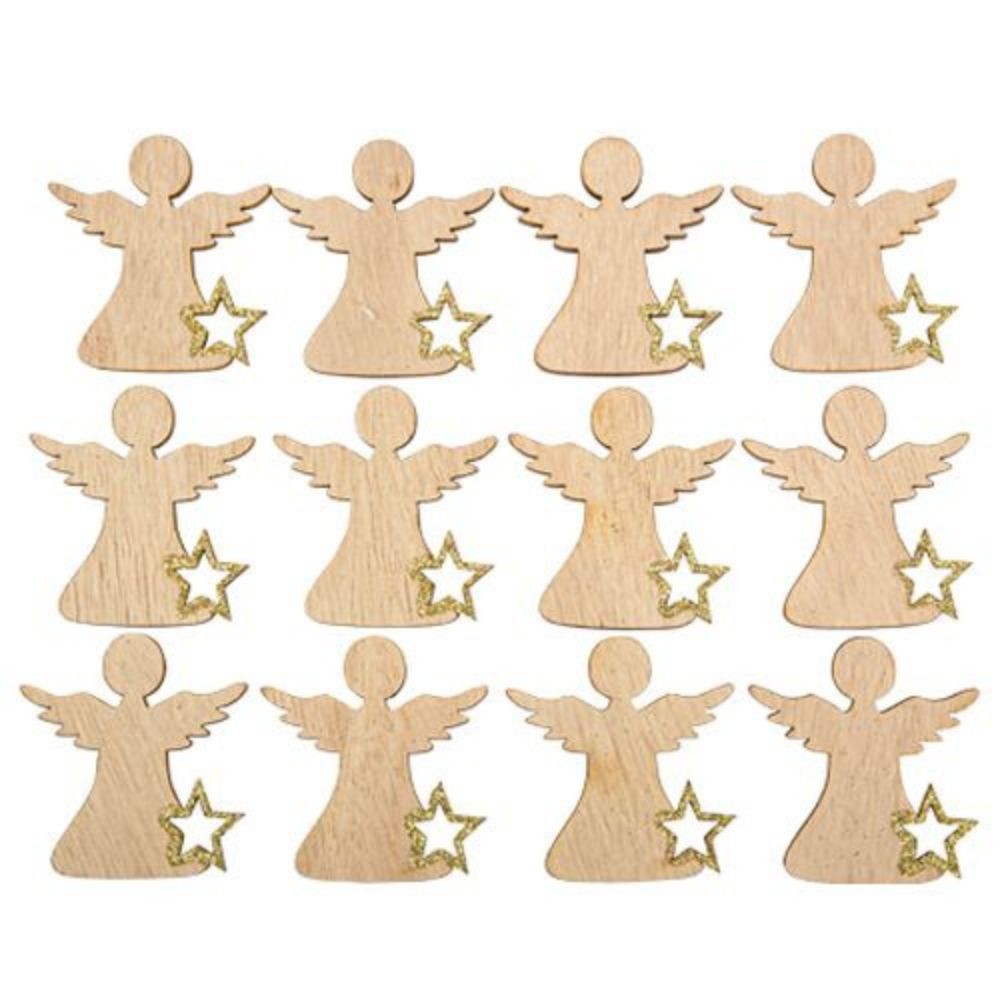 Réf. : ART-085548 Lot de 12 confettis en bois naturel en forme d'ange, avec une étoile dorée scintillante, afin d'ajouter une touche de magie. Dimensions : 4 x 3,5 cm. Parfaits pour une décoration de table élégante et féérique à Noël, ils embellissent vos créations DIY, scrapbooking et ambainces festives.