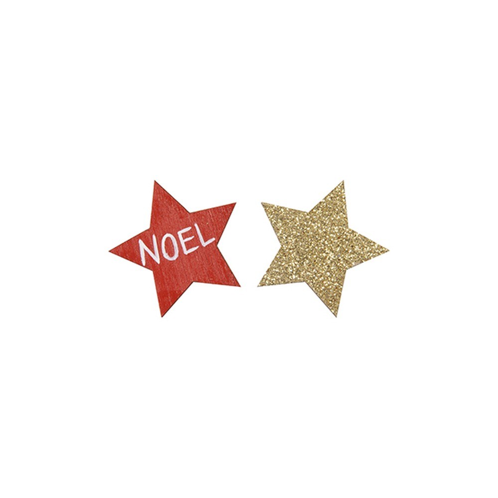 12 CONFETTIS BOIS ÉTOILE 3.5CM OR PAILLETÉ ROUGE