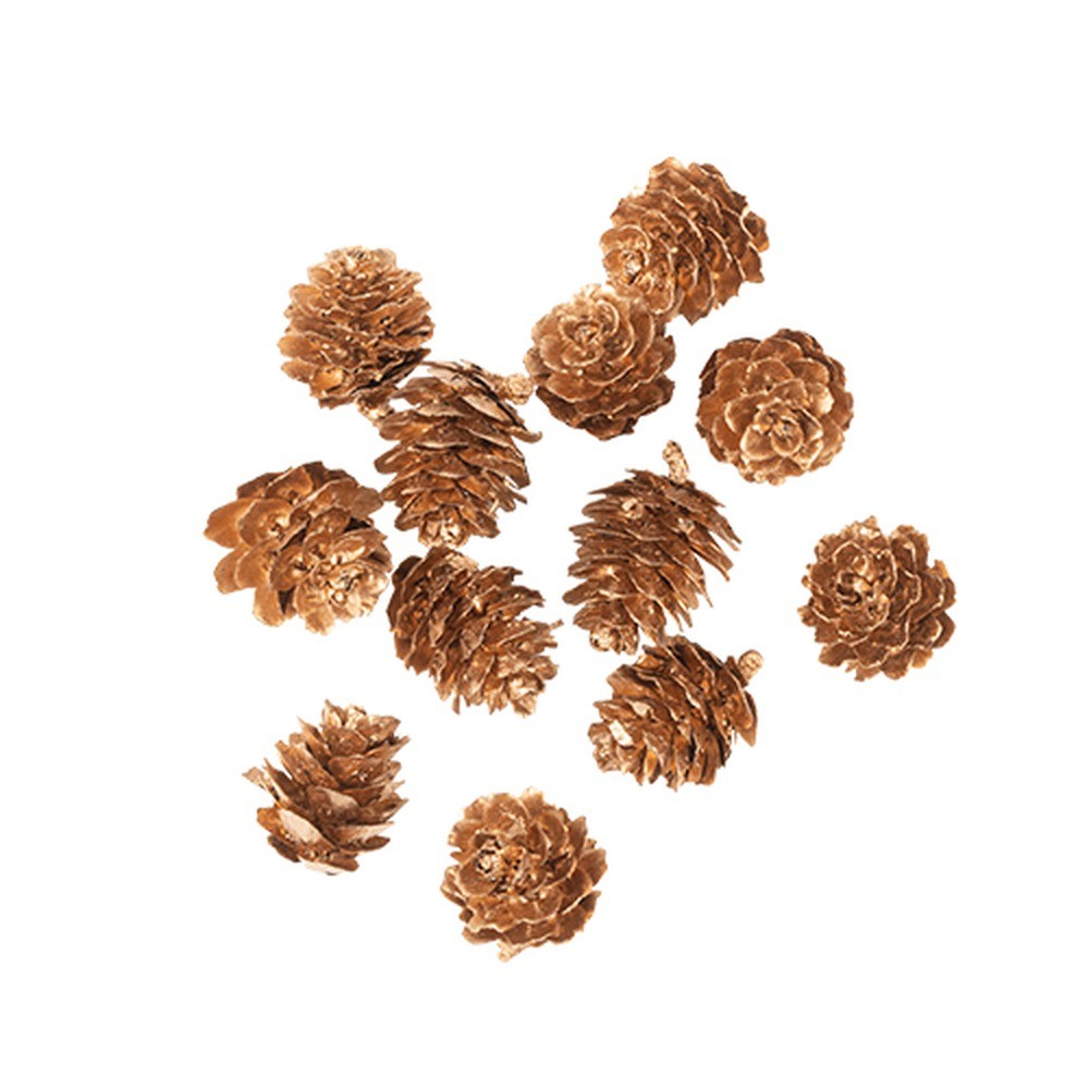 Réf. : ART-085126 Lot de 12 pommes de pin naturelles, subtilement dorées pour un effet brillant, afin de créer un décor forestier hivernal. Dimensions : 2 cm. Vous pouvez les disposer sur vos tables de réception, les utiliser pour décorer une couronne de Noël ou encore customiser un support.