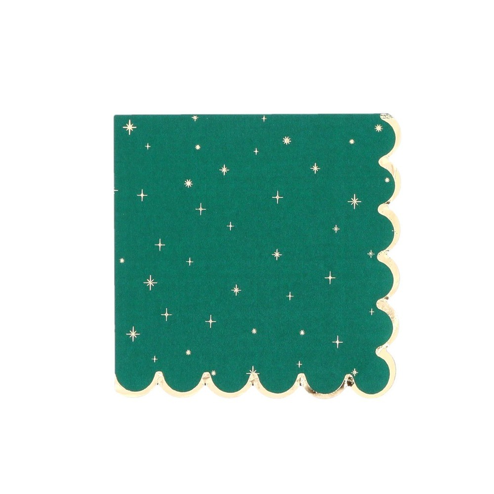 16 SERVIETTES PAPIER ÉTOILES DORÉES 33CM VERT