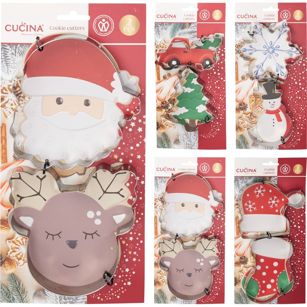 Réf. : ART-085265 Lot de 2 emporte-pièces de Noël en inox afin de transformer chaque pâte en petite merveille festive. Dimensions : 13 x 11,5 x 20 cm. Vendu par lot de 2. 4 assortiments existent, envoi aléatoire en fonction du stock disponible. Entre bonhommes, étoiles, sapins et flocons, vos biscuits prennent vie sous les traits de la magie hivernale. À offrir ou à utiliser pour pâtisser en famille, ce duo promet des fournées joyeuses et parfumées à partager sans modération.