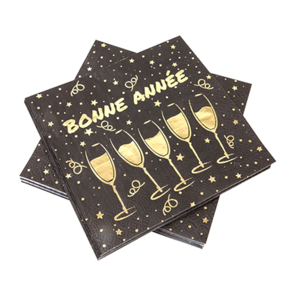 20 SERVIETTES PAPIER PÉTILLANT ANNÉE 33CM NOIR