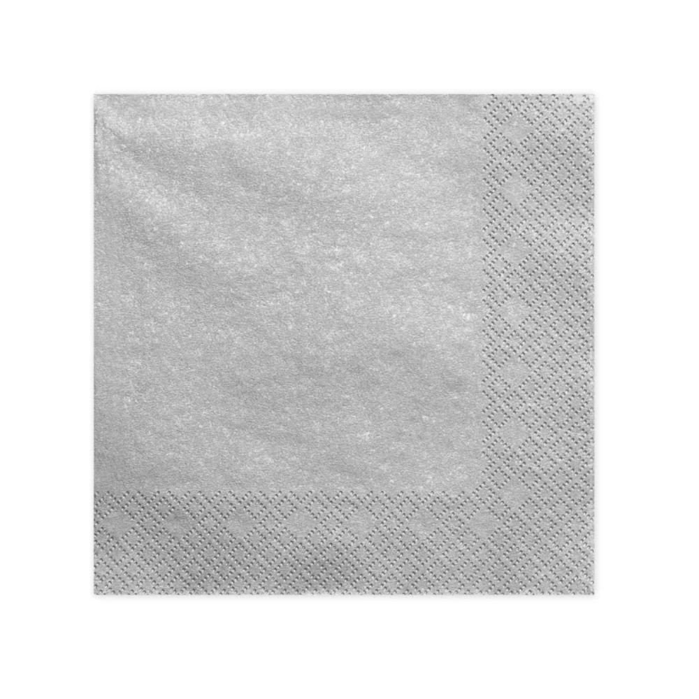 Réf. : ART-085876 Lot de 20 serviettes en papier argent métallisé pour apporter éclat et raffinement à vos repas de fête. Largeur : 40 cm. Leur triple épaisseur assure confort et qualité, tandis que leur teinte scintillante sublime vos tables de Noël et de réveillon. Élégantes et résistantes, ces serviettes offrent une touche chic et festive à toutes vos décorations de table hivernales.