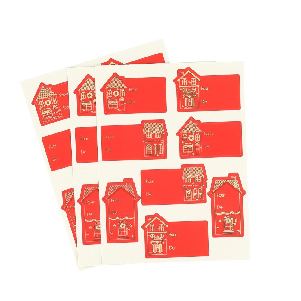 Réf. : ART-085216 Lot de 24 étiquettes pré-remplies autocollantes, en forme de maison avec impressions dorées, pour personnaliser vos cadeaux de Noël. Dimensions : 3,5-7 cm. Une délicate et authentique attention pour que la magie de Noël opère.