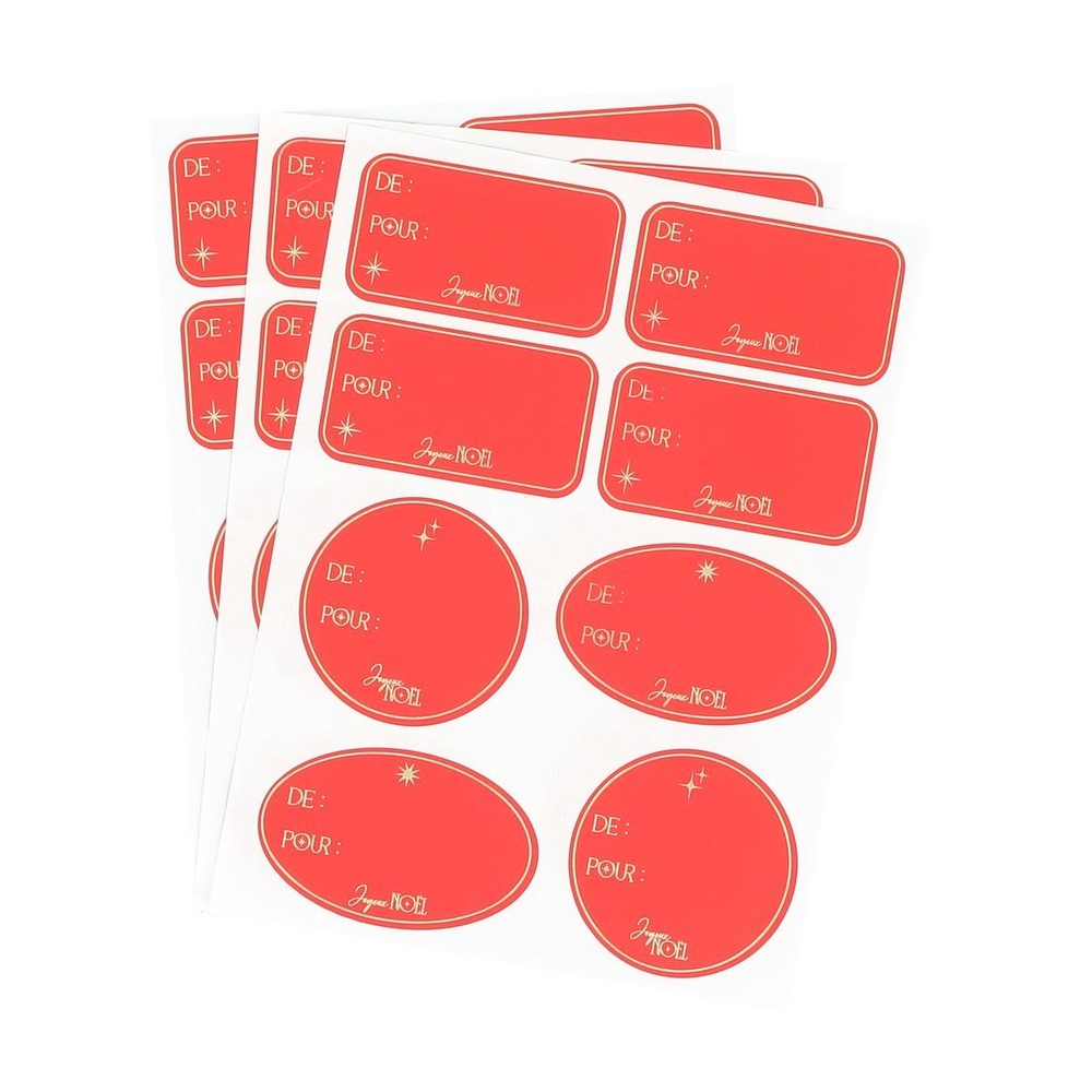 24 STICKERS CADEAUX NOËL TRADITION 6.5-7CM ROUGE