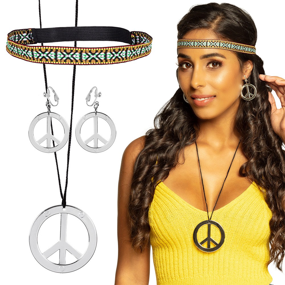 Accueil > JE ME DÉGUISE > ACCESSOIRES > Bijoux > 3 ACCESSOIRES HIPPIE BANDEAU BIJOUX FANTAISIE