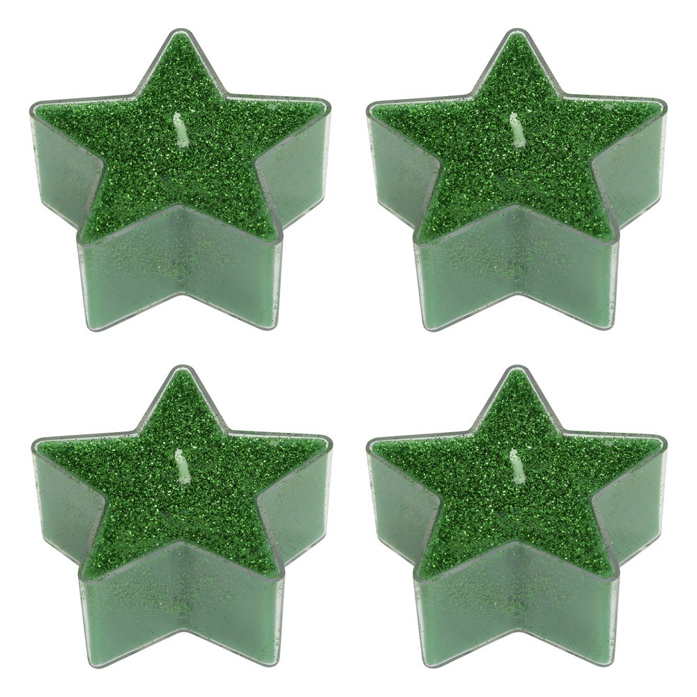 4 BOUGIES CHAUFFE-PLAT ÉTOILE 5.6CM PAILLETÉ VERT