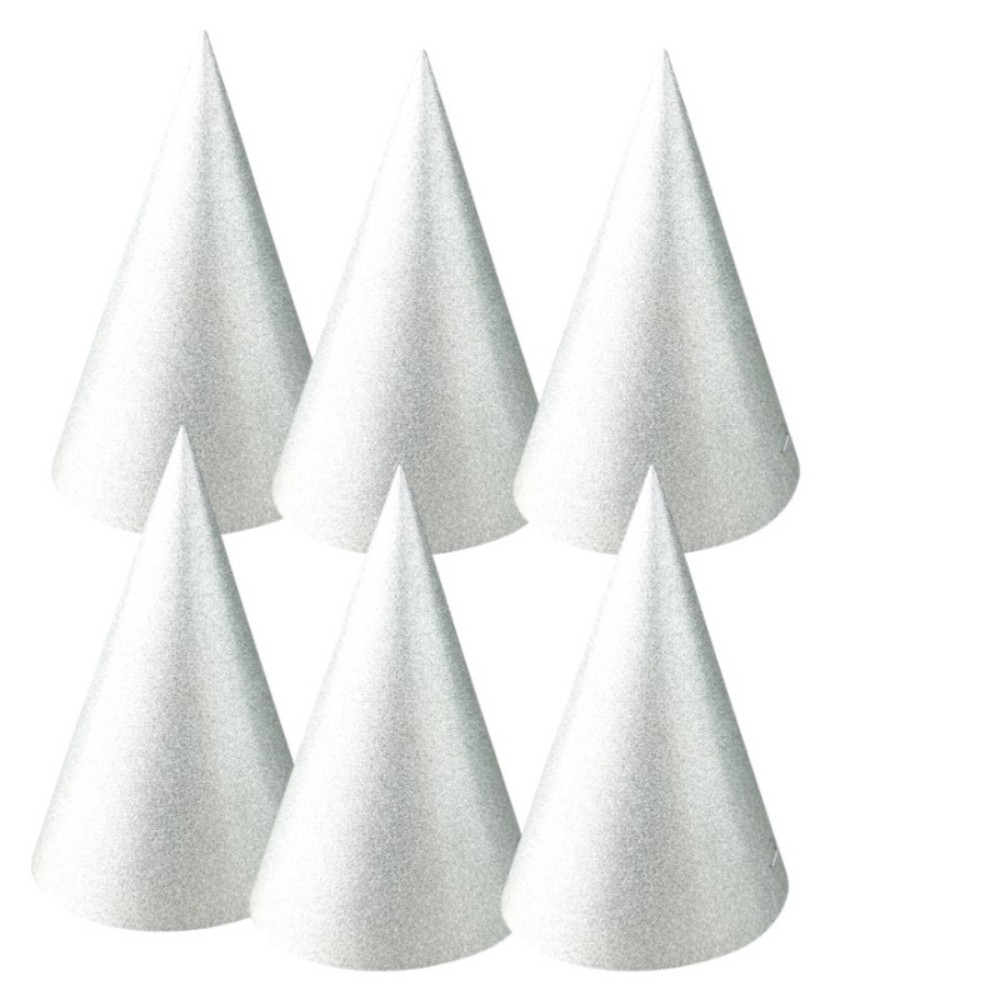 6 CHAPEAUX CÔNES DE FÊTE 16CM ARGENT PAILLETÉ