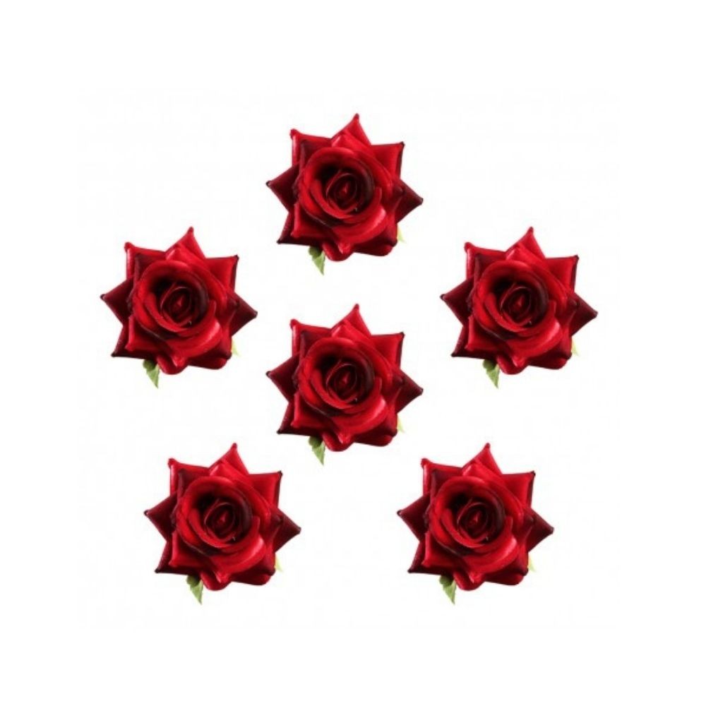 6 FLEURS ROSE ARTIFICIELLE VELOUTÉ 7CMX4.5CM ROUGE
