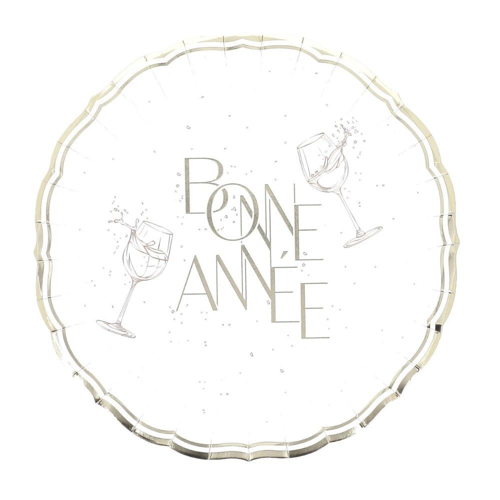 8 ASSIETTES CARTON ANNÉE PÉTILLANT OR 23CM BLANC