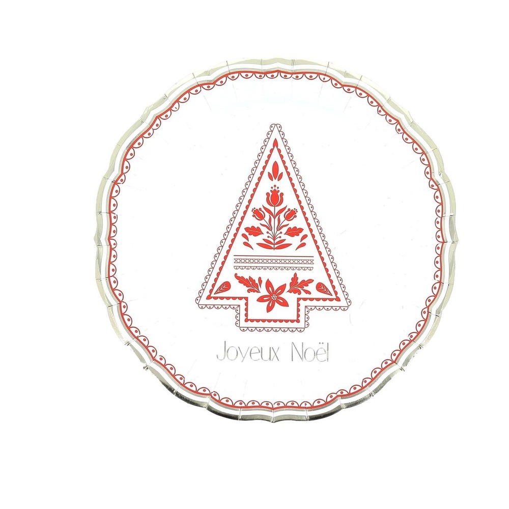 8 ASSIETTES CARTON NOËL FOLKY 23CM BLANC ROUGE