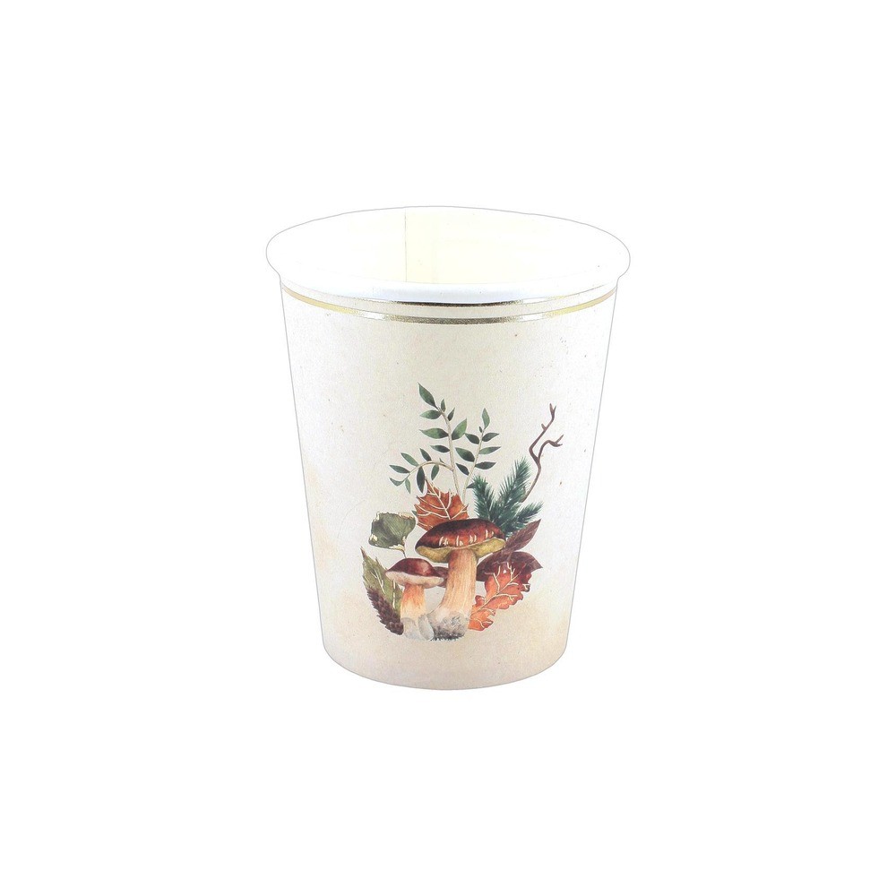Réf. : ART-084680 Lot de 8 gobelets en carton crème avec bordure en accolade or métallisé et illustrées par des motifs de champignons et feuillages automnaux. Capacité : 25 cl. Pratique et élégante, cette vaisselle éphémère sera parfaite afin d'enchanter vos convives lors de vos festivités. Nous vous invitons à consulter tous les articles de la gamme afin d'harmoniser votre décoration.