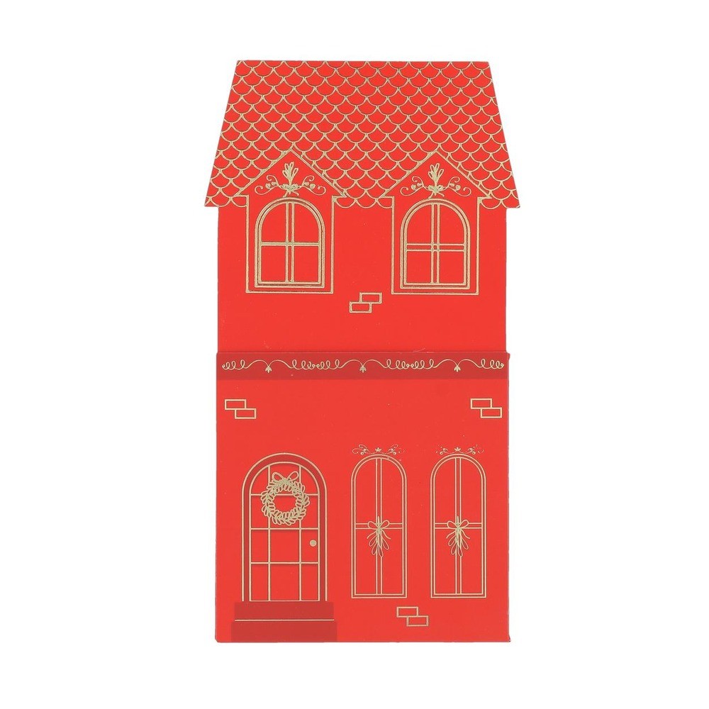 Réf. : ART-085112 Lot de 8 porte-couverts en papier en forme de maison, de couleur rouge avec motifs dorés, de 10 cm x 20 cm. Apportez une note chic et décalée à votre décoration de table à l'occasion des fêtes de Noël avec ces porte-couverts originaux.