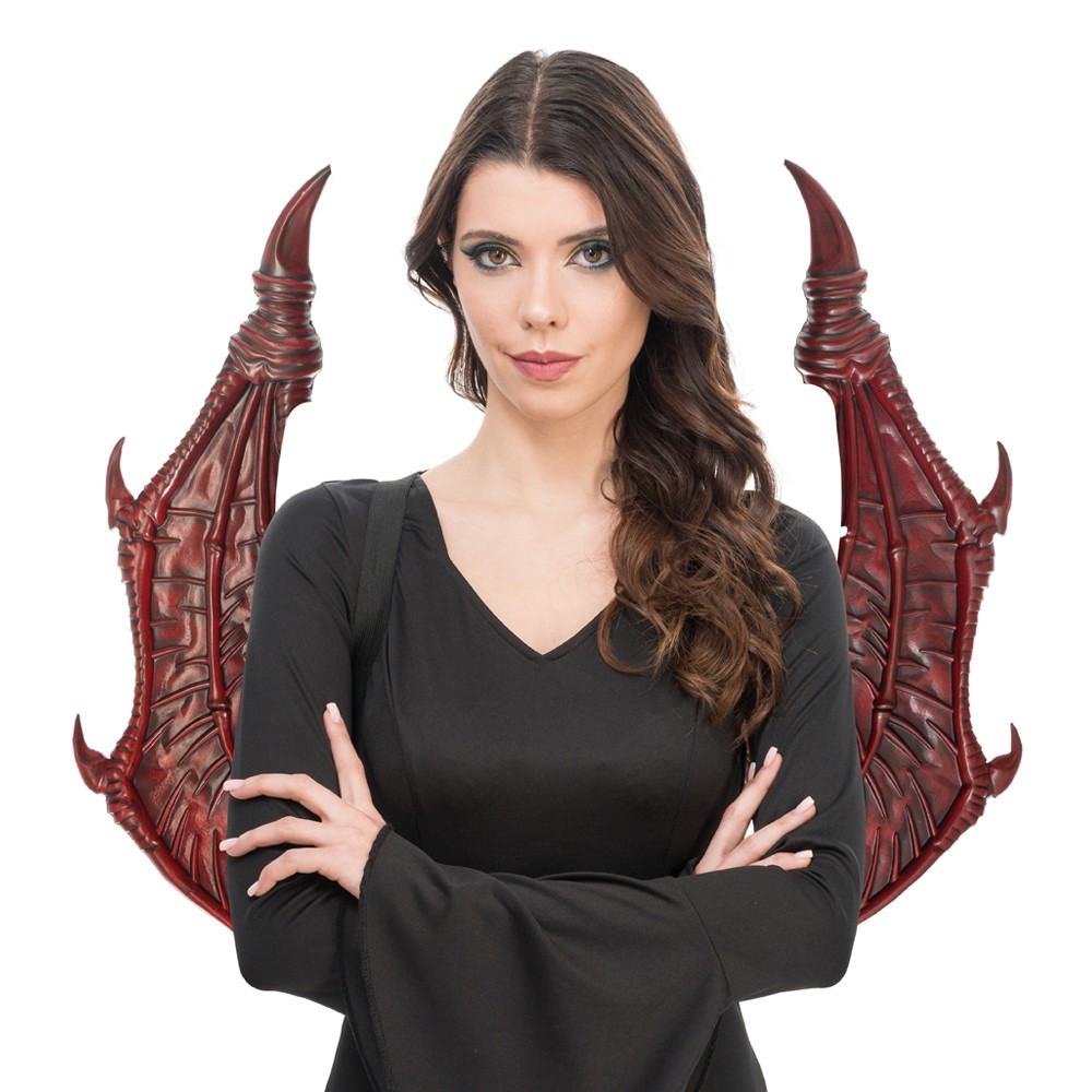Réf. : ART-083950 Paire d'ailes de démon en mousse texturée afin de compléter votre déguisement. Dimensions : 74 x 62 cm. Elles présentent une finition rouge sombre avec des détails veinés et nervurés qui imitent parfaitement des ailes de créature infernale. Chaque aile est ornée de pointes recourbées, accentuant leur allure menaçante. Confortables à porter grâce à leurs sangles ajustables, elles sont idéales pour Halloween.