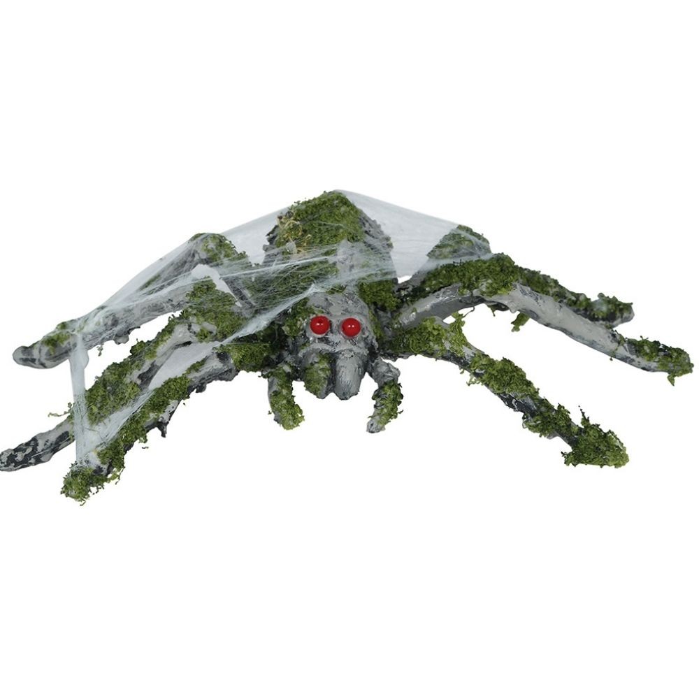 Réf. : ART-084233 Araignée décorative semblant figée dans le temps, enveloppée d'une toile spectrale et de mousse artificielle, pour créer une ambiance mystérieuse et angoissante la nuit d'Halloween. Largeur : 22 cm. Tapis dans l'ombre, son corps gris et ses yeux rouges perçants ajoutent une touche d'épouvante à votre espace. Convient naturellement à un lieu type vieux manoir hanté.