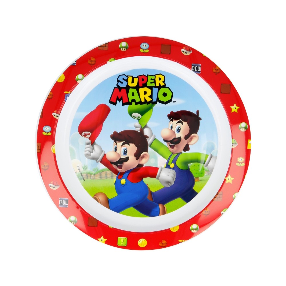 Réf. : ART-083486 Assiette en plastique réutilisable, à l'effigie et sous licence de Super Mario, pour enfant. Largeur : 22 cm. Léger et facile à manipuler, elle est fabriquée dans un matériau résistant pour éviter la casse. On y trouve une illustration du célèbre duo de plombiers, mascotte du jeu vidéo. Micro-ondable, le récipient est pratique pour réchauffer rapidement un plat.