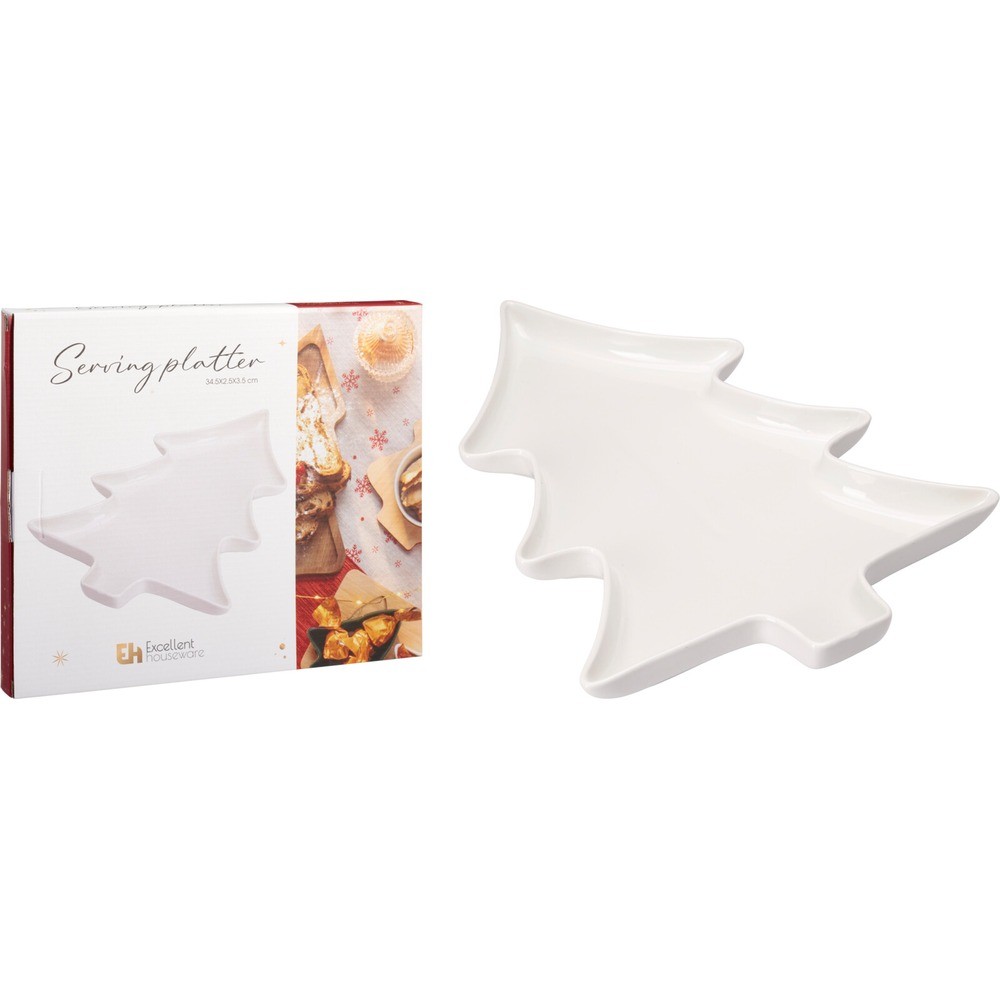 Réf. : ART-085284 Assiette en porcelaine blanche en forme de sapin, élégante et festive, pour servir des gourmandises. Longueur : 34,5 cm. Poids : 950 g. Idéale pour présenter vos douceurs de Noël, apéritifs ou biscuits avec raffinement. Parfaite pour sublimer vos tables de fête tout en ajoutant une touche hivernale chic.