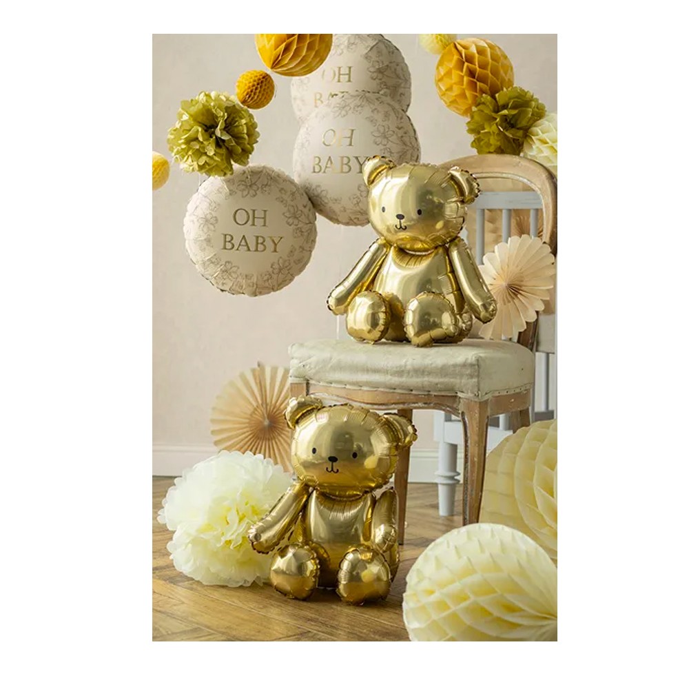 BALLON ALUMINIUM OURSON 38X42CM OR MÉTAL
