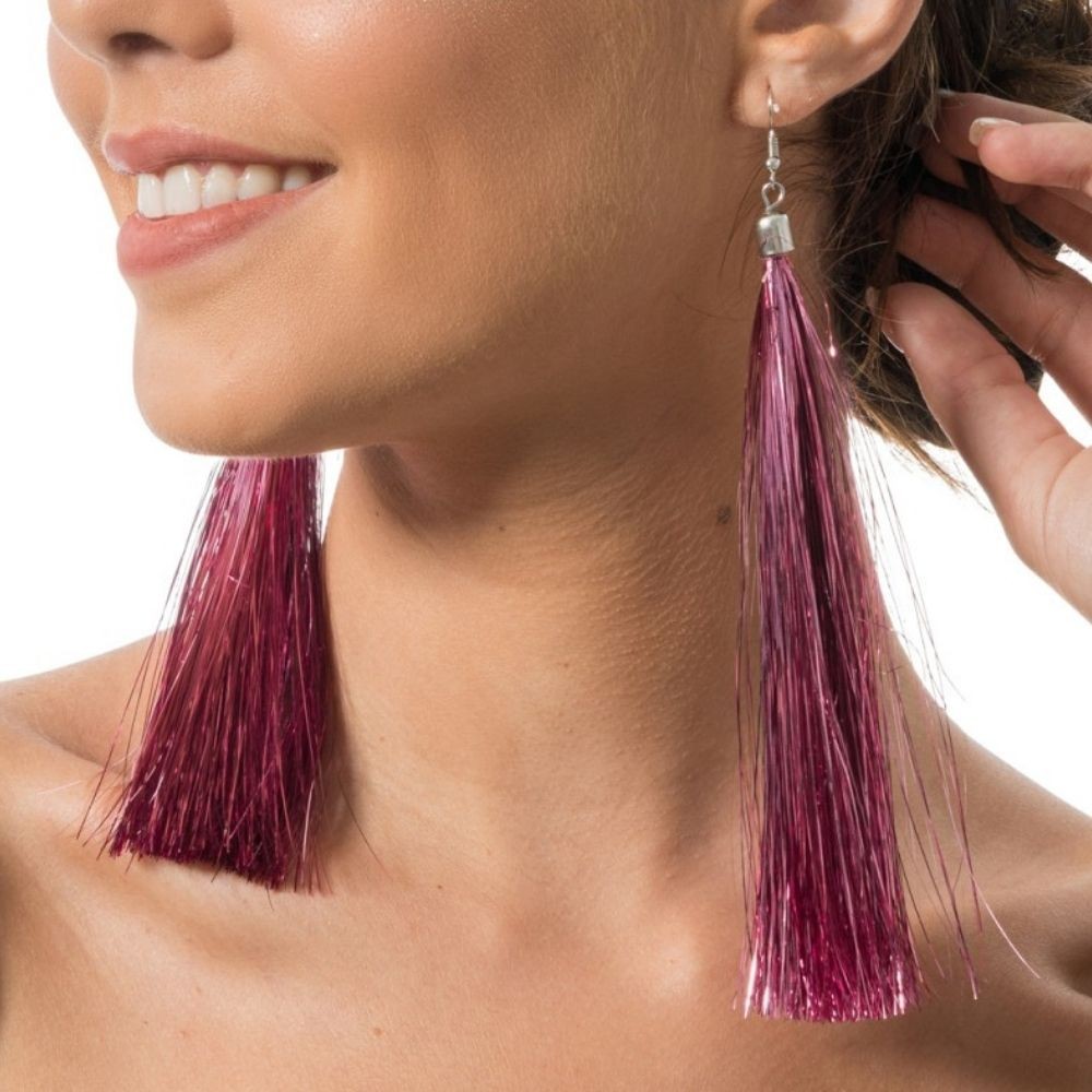 Réf. : ART-084121 Boucles d'oreilles à franges en fil métal rose scintillant pour apporter une touche glamour et festive à votre look. Longueur : 17 cm. Idéales pour les soirées, festivals ou déguisements, elles captent la lumière à chaque mouvement pour un effet sensationnel. L'accessoire parfait pour affirmer votre style avec audace !