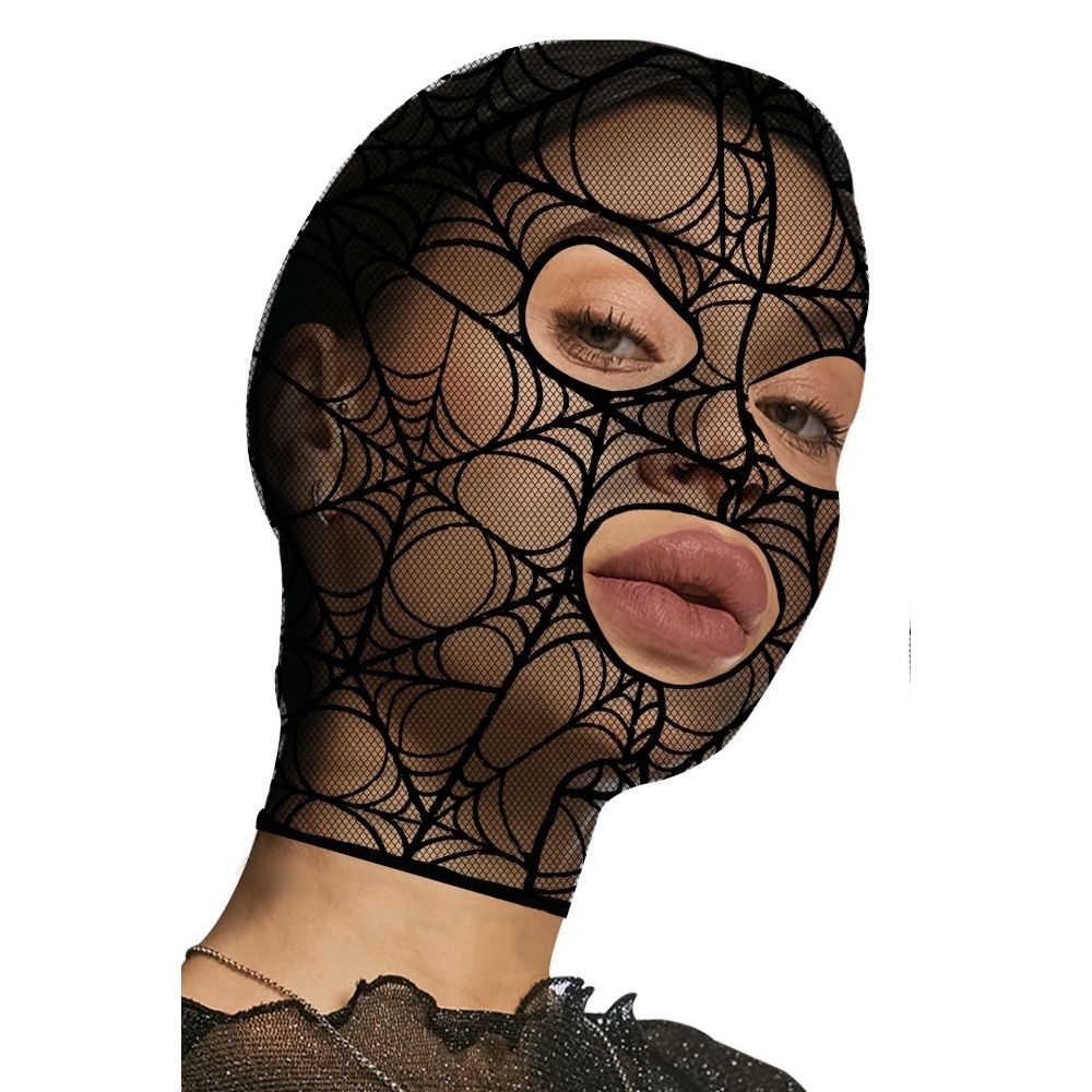 Réf. : ART-084284 Cagoule en résille noire aux motifs toiles d'araignée pour plonger dans un univers mystérieux. Sensuelle et intrigante, elle évoque la séduction de l'ombre pour un look Halloween ou gothique envoûtant. Idéale pour compléter un déguisement de sorcière, veuve noire ou créature nocturne.