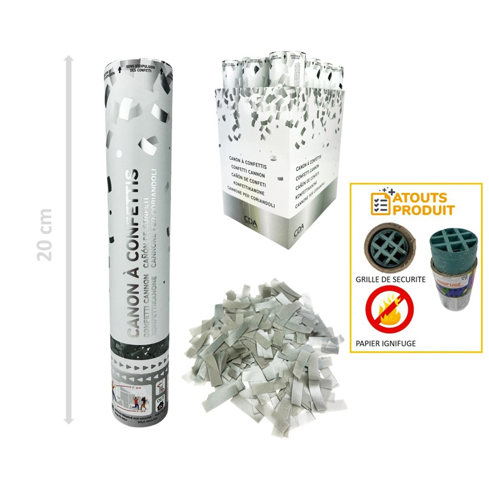 CANON À CONFETTIS PAPIER RECTANGLE 20CM ARGENT