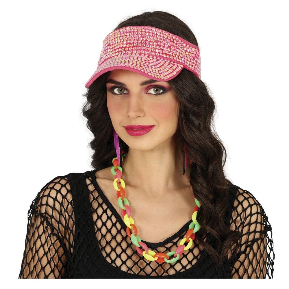 Réf. : ART-084147 Casquette visière rose à strass étincelants adulte pour en mettre plein la vue. Parfaite pour accessoiriser un look disco, 80s ou fluo, elle ajoutera une touche glamour à vos déguisements de fête ou soirées à thème. Confortable et légère, elle allie style flashy et praticité.