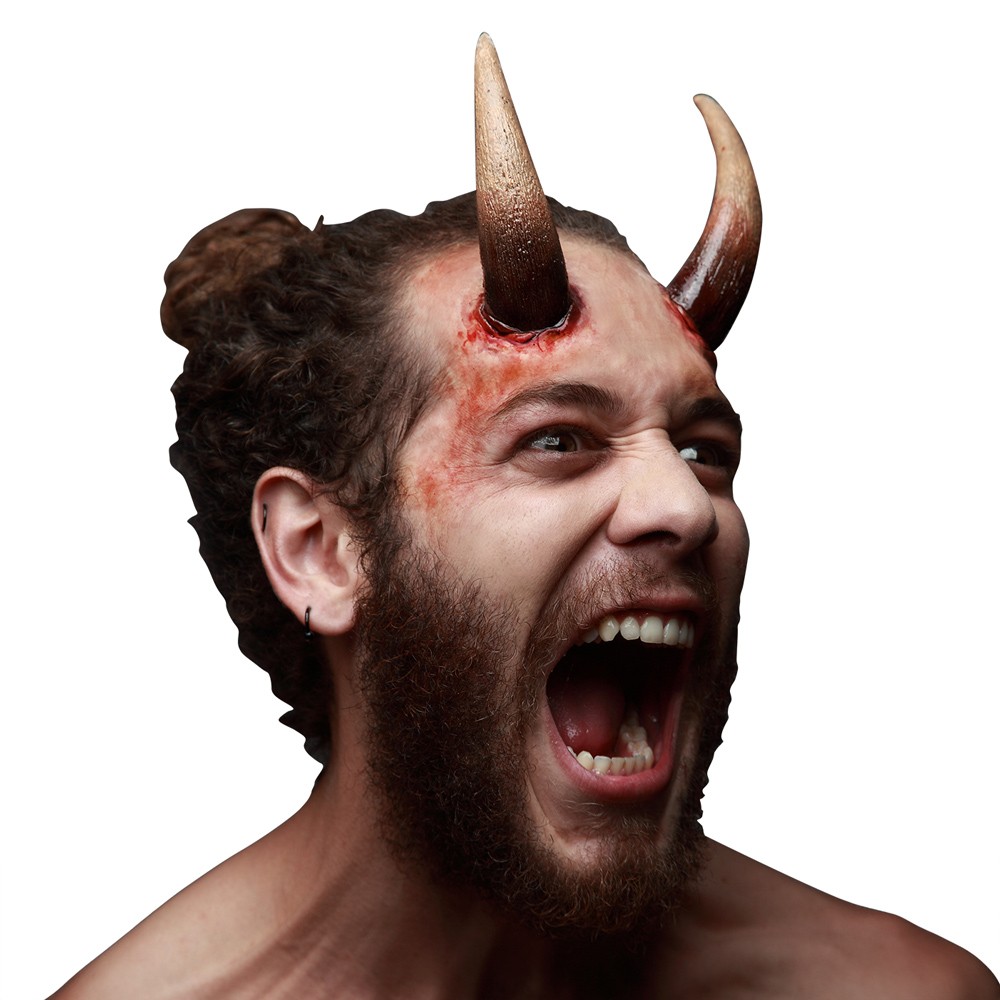 Réf. : ART-083987 Cicatrice en latex effet cornes démoniaques ensanglantées, donnant l'illusion d'être fraîchement sorties du crâne, pour renforcer votre jeu de rôle la nuit d'Halloween. Dimensions : 9,5 x 3 cm. Idéale pour un look terrifiant de diable ou de créature maléfique. Application facile pour un effet spectaculaire garanti !