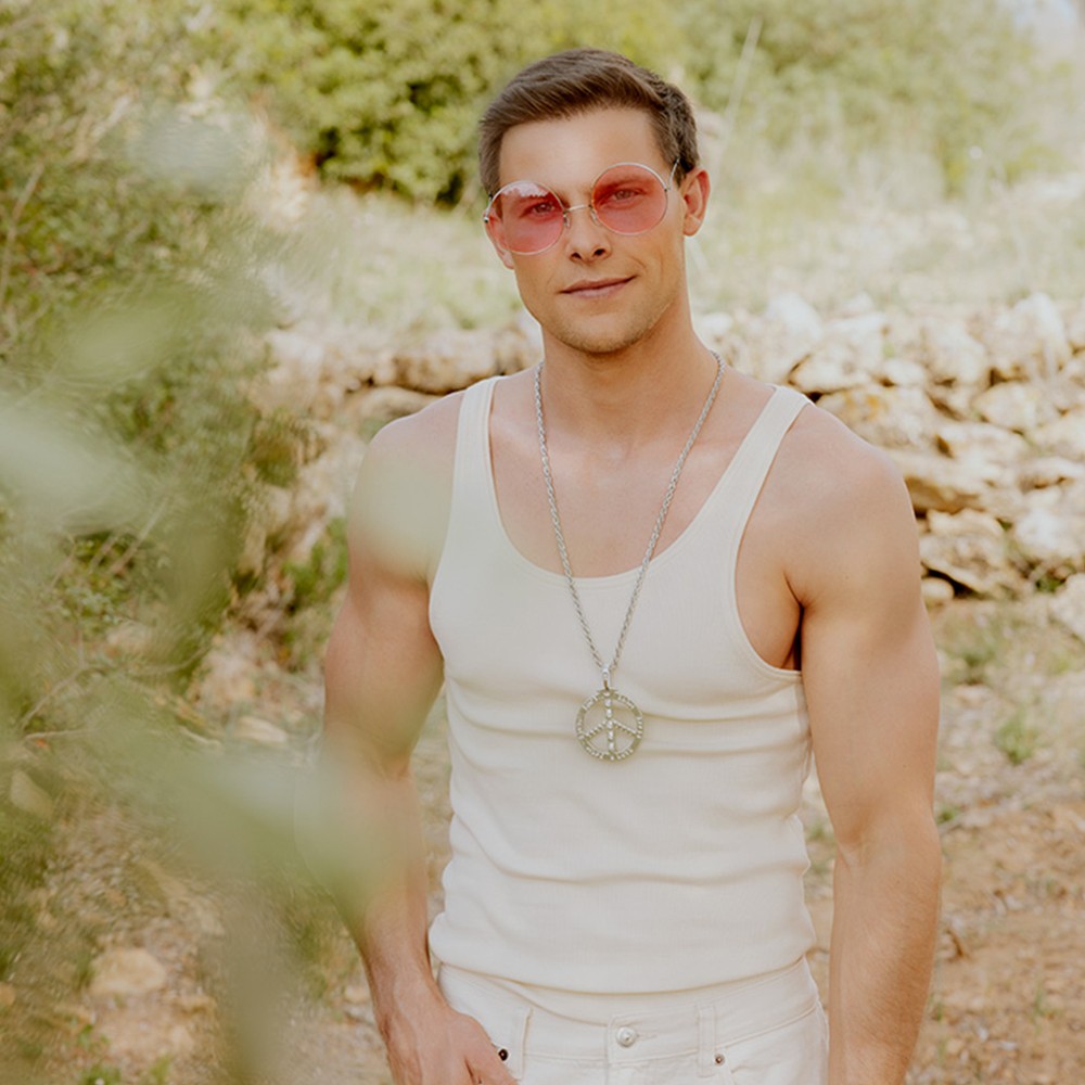 Accueil > JE ME DÉGUISE > ACCESSOIRES > Bijoux > COLLIER CHAINE PENDENTIF PEACE LOVE 5.5CM ARGENT