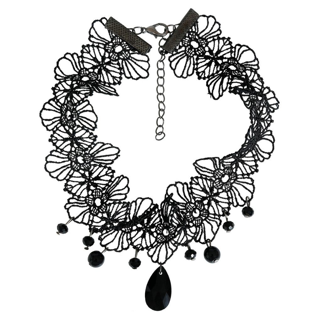 Accueil > JE ME DÉGUISE > ACCESSOIRES > Bijoux > COLLIER RAS-DE-COU DENTELLE DÉCO PIERRE NOIR FEMME