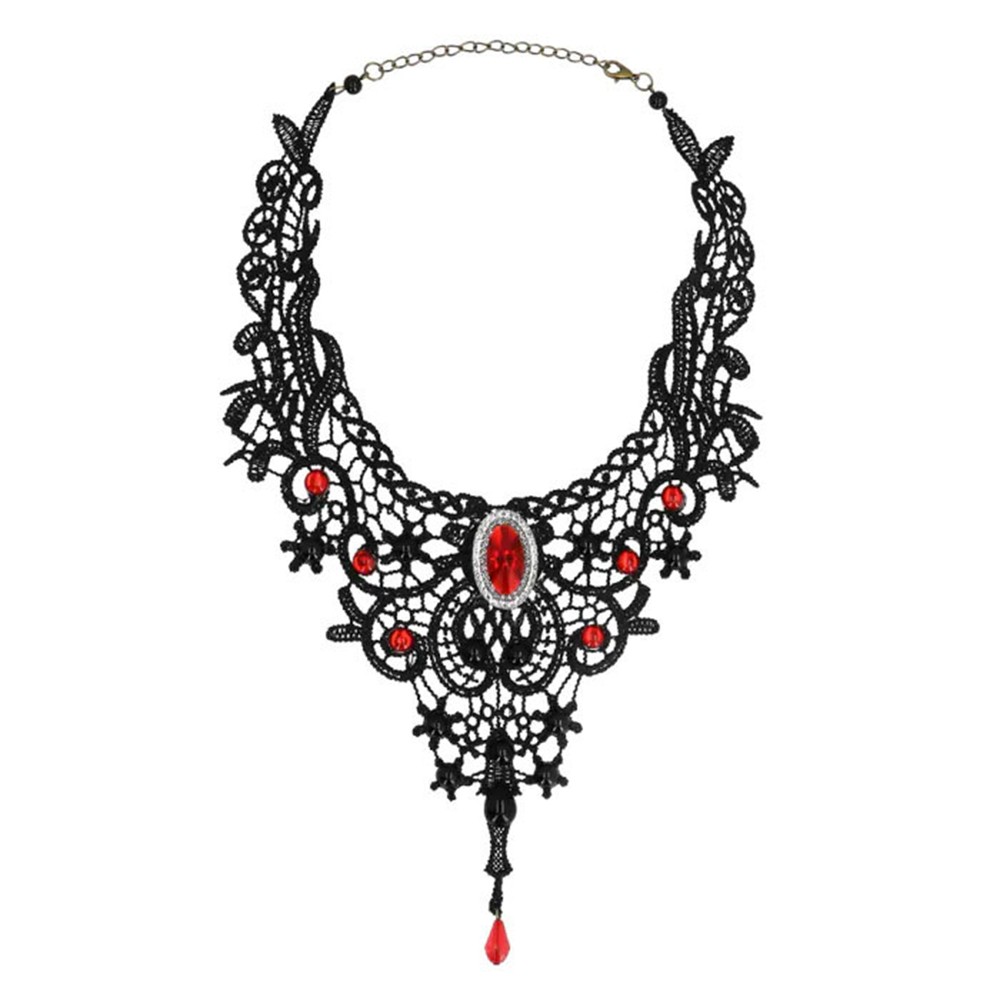 COLLIER VAMPIRE DENTELLE RUBIS FACTICE FEMME