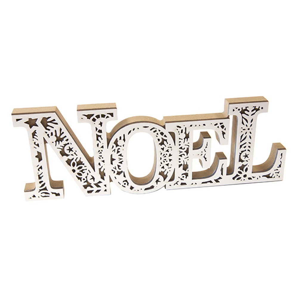 DÉCO MOT NOËL BOIS MOTIFS AJOURÉS 8X22X1.5CM BLANC