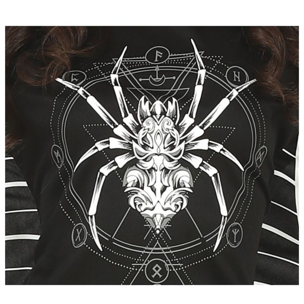 Réf. : ART-084490 Déguisement femme d'araignée, avec robe noire et ailes en toile d'araignée déployées, pour une illusion parfaite d'une créature élégante et redoutable, prête à tisser sa toile sous la lune d'Halloween. Motifs mystiques et épaules dénudées ajoutent une touche ensorcelante. Un costume captivant pour la reine des pièges nocturnes.