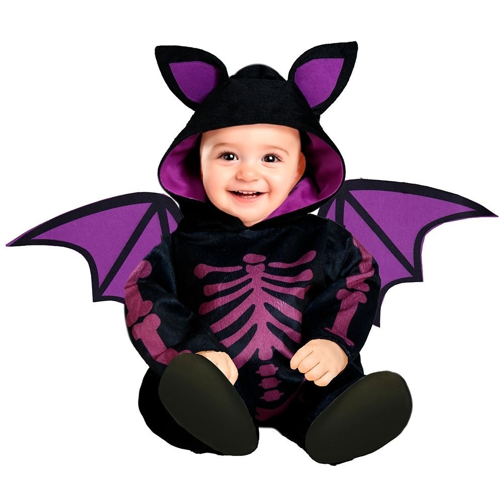 Réf. : ART-084507 Déguisement de chauve-souris violet pour bébé comprenant les ailes, la combinaison et la capuche afin de jouer une adorable créature la nuit d'Halloween. Elle allie originalité et mignonnerie avec sa combinaison noire ornée d'un squelette violet et ses grandes ailes assorties. La capuche avec oreilles pointues complète parfaitement ce look Halloween à la fois adorable et effrayant. Parfait pour un petit monstre prêt à voler la vedette !