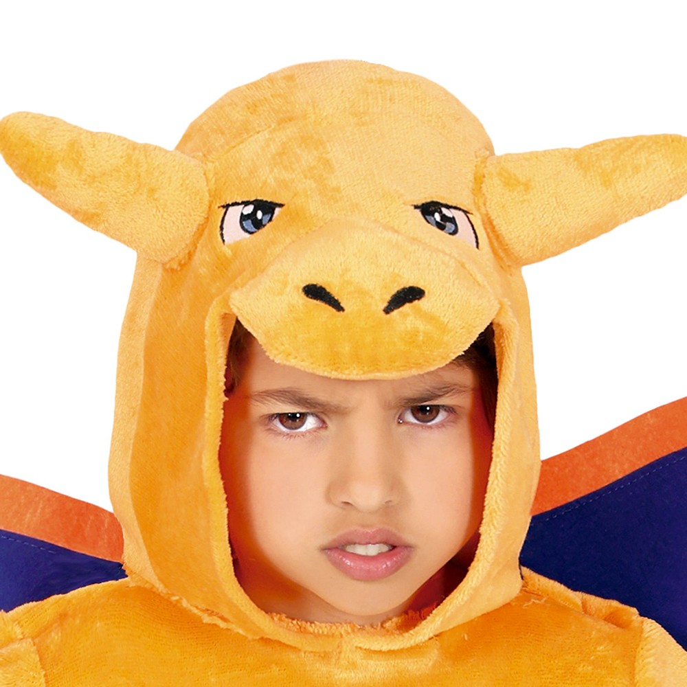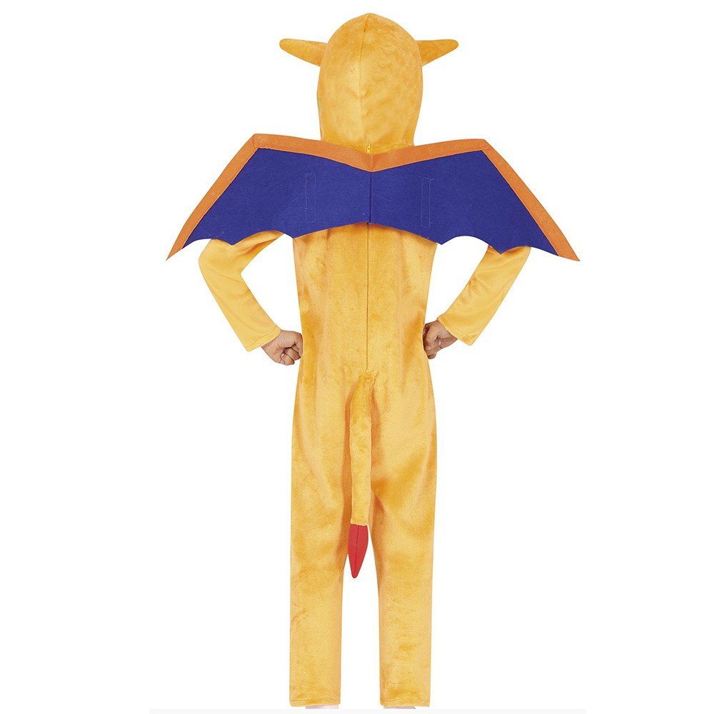 Réf. : ART-081853 Déguisement de dragon mystique orange pour enfant composé d'une combinaison orange avec queue, paire d'ailes oranges et bleues ainsi qu'une capuche tête de dragon. Cette combinaison sera parfaite lors d'une fête à thème, un spectacle scolaire, le Carnaval ou simplement pour s'amuser.