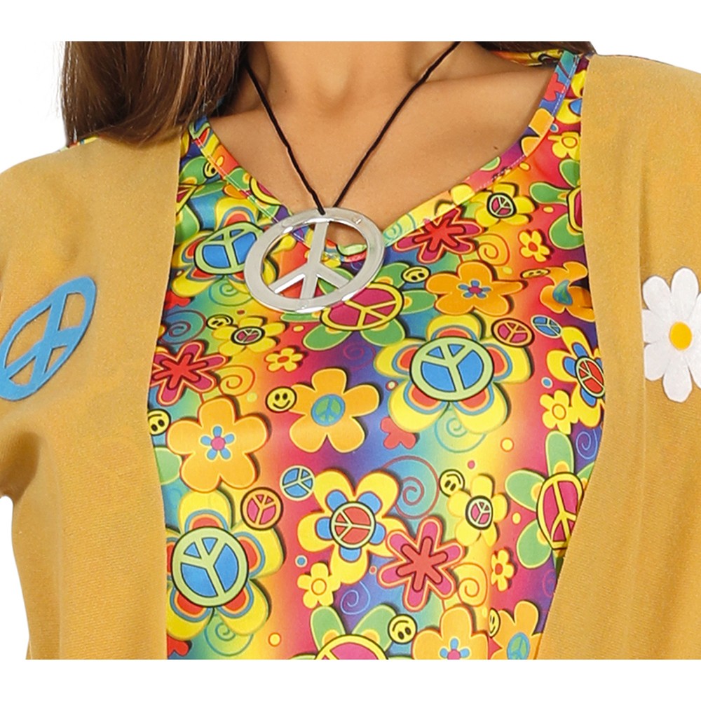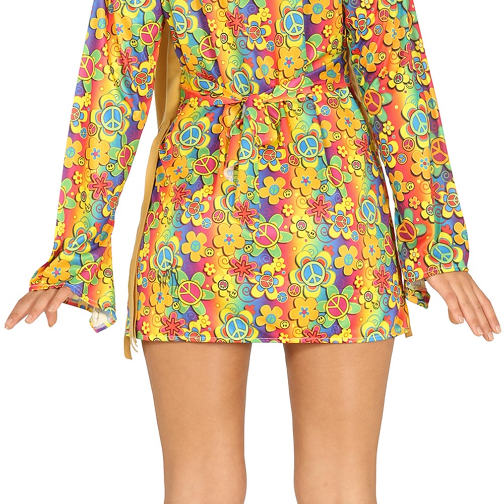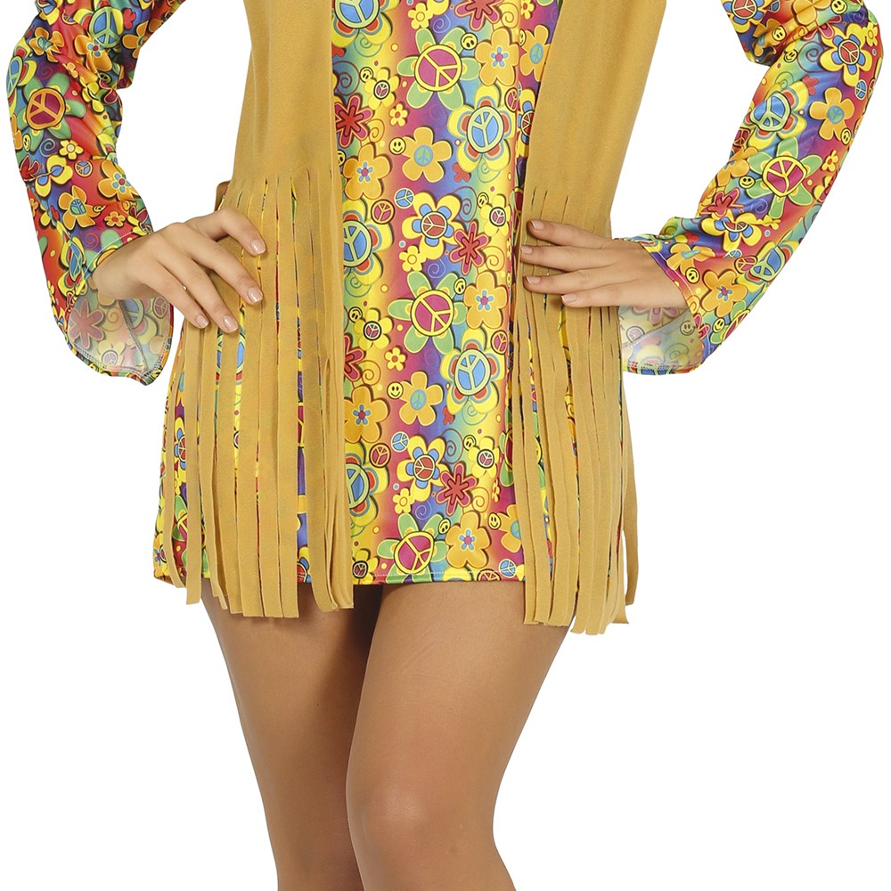 Réf. : ART-083688 Déguisement comportant un gilet, une robe et un bandeau pour une fête à thème Hippie ou le Carnaval. La paire de lunettes et les bijoux fantaisies ne sont pas inclus. La robe est composée de motifs vibrants et multicolores pour diffuser des ondes positives autour de vous. Les franges et les motifs floraux apportent un côté bohème. Inspiré par les années 60, l'ensemble est parfait afin de prôner l'esprit de paix, d'amour et de tolérance de cette période emblématique.