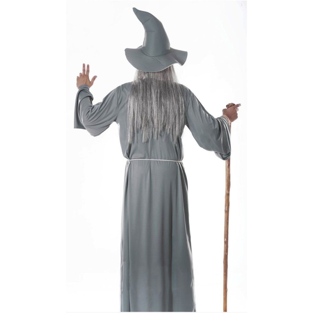 Déguisement mage pour adulte. Ce costume de magicien comprend : le chapeau pointu, haut, gris. La tunique longue, elle arrive au pied, et grise. La ceinture cordelette. Ce costume de mage pour adulte fera penser à la tenue de Gandalf dans le seigneur des anneaux. Vous pourrez y ajouter une perruque de magicien avec la barbe. Ce déguisement pour homme sera parfait pour une soirée déguisée ou le carnaval. La taille unique correspond à une taille L environ.