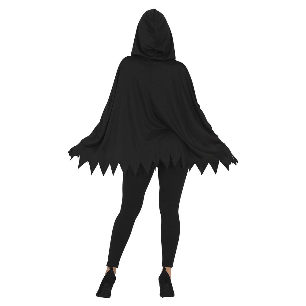 Réf. : ART-084572 Déguisement poncho squelette pour femme, avec capuche noire et imprimé osseux blanc sur fond ténébreux, pour hanter Halloween avec style et confort. Gants et legging non inclus. Une allure légère mais glaçante. Facile à enfiler, idéal pour un effet macabre sans effort. L'esprit d'outre-tombe n'a jamais été aussi chic.