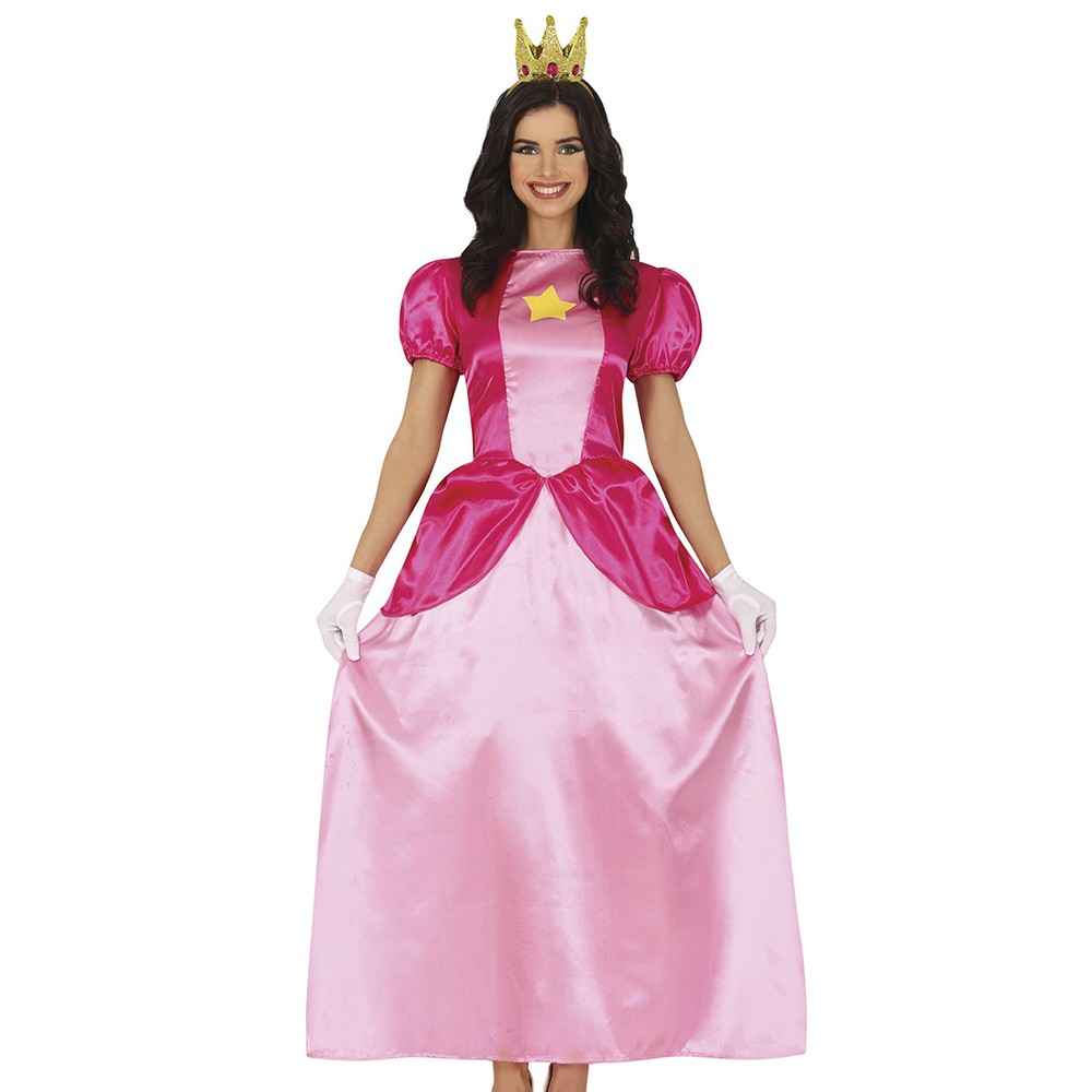 Réf. : ART-083092 Déguisement robe rose de princesse star pour femme composé d'une robe rose et fuchsia effet satin avec impression étoile dorée sur le buste. Gants et couronne non inclus. Cette tenue sera parfaite lors d'une fête à thème, un spectacle scolaire, un goûter d'anniversaire, le Carnaval ou simplement pour s'amuser.