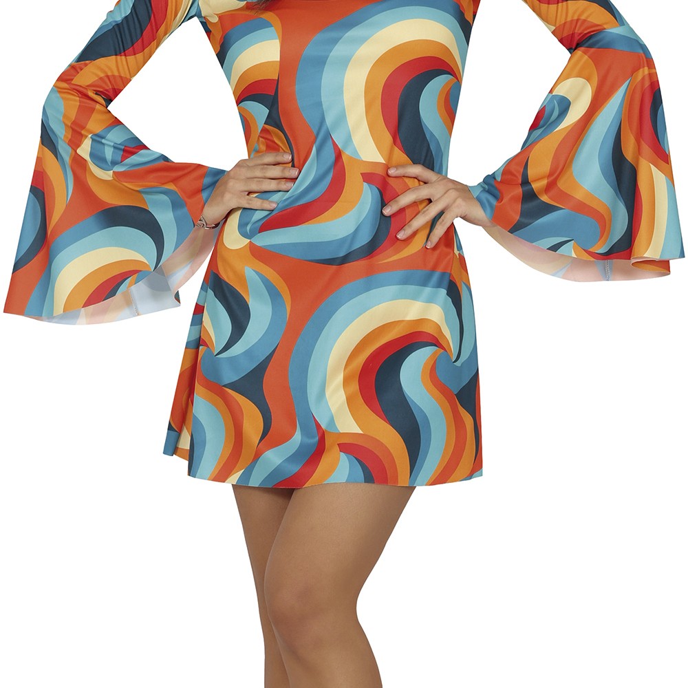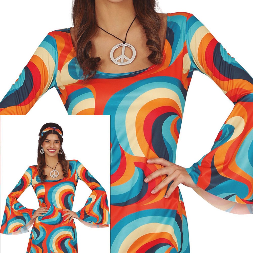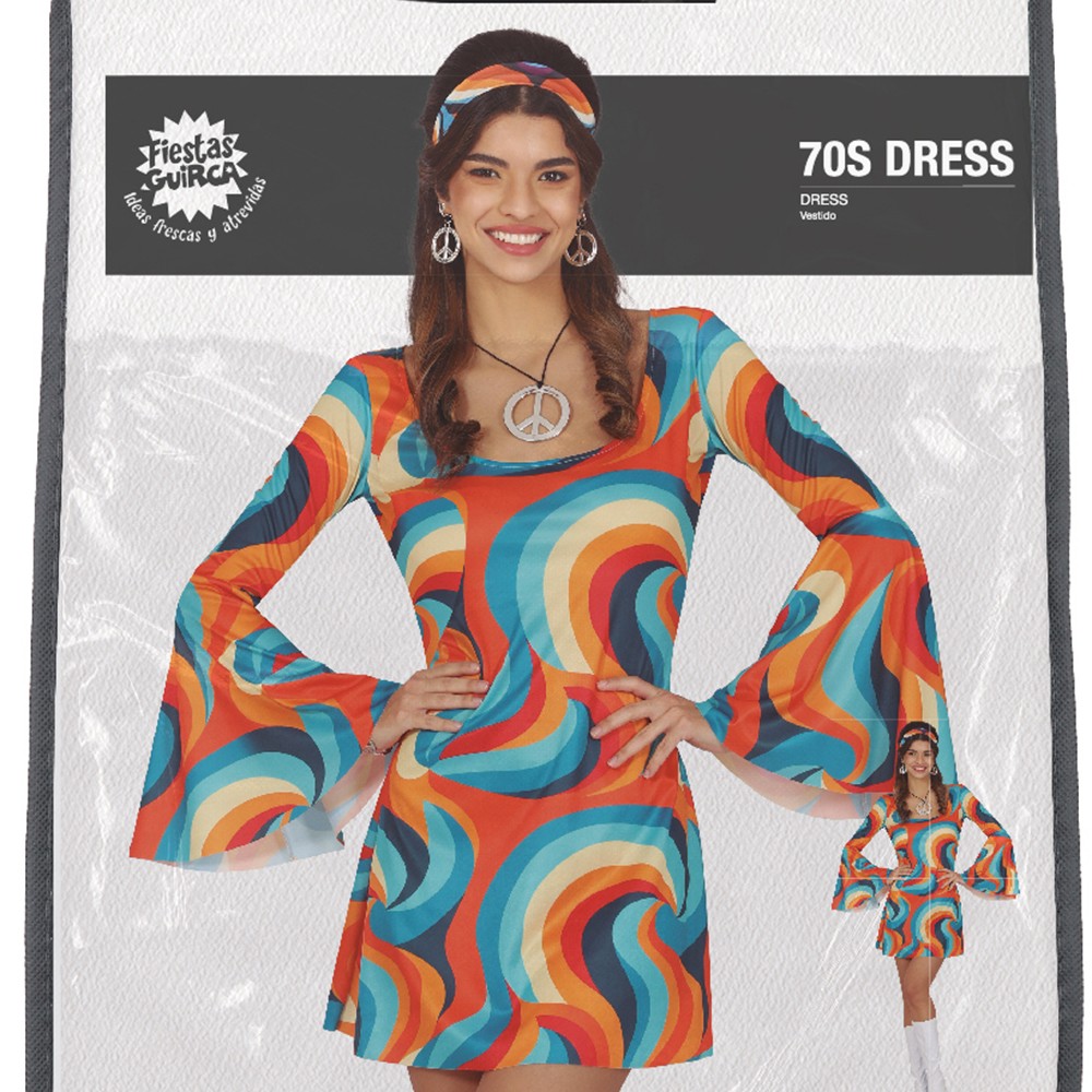 Réf. : ART-083700 Déguisement comportant une robe et un bandeau, aux motifs vintage bleus et oranges, pour une fête à thème Hippie ou le Carnaval. Les bijoux fantaisies et les bottes ne sont pas inclus. Avec ses manches longues évasées et son décolleté arrondi, ce vêtement est illustré de vagues de couleurs dans un style artistique captivant pour diffuser de bonnes vibrations autour de vous. Confortable, il laisse une grand liberté de mouvement.