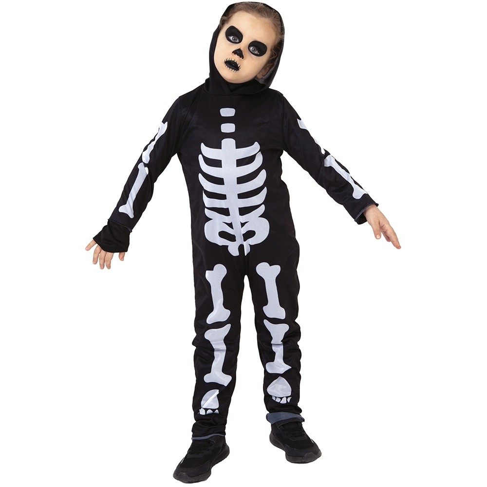 Réf. : ART-083871 Déguisement de squelette enfant sous forme de combinaison à capuche pour la nuit d'Halloween. Parfait pour se transformer rapidement en petit revenant effrayant, il se compose de manches longues et d'un imprimé illustrant les ossements du corps humain. Un costume classique et terriblement efficace pour déambuler dans la nuit et récolter des bonbons... ou des frissons !