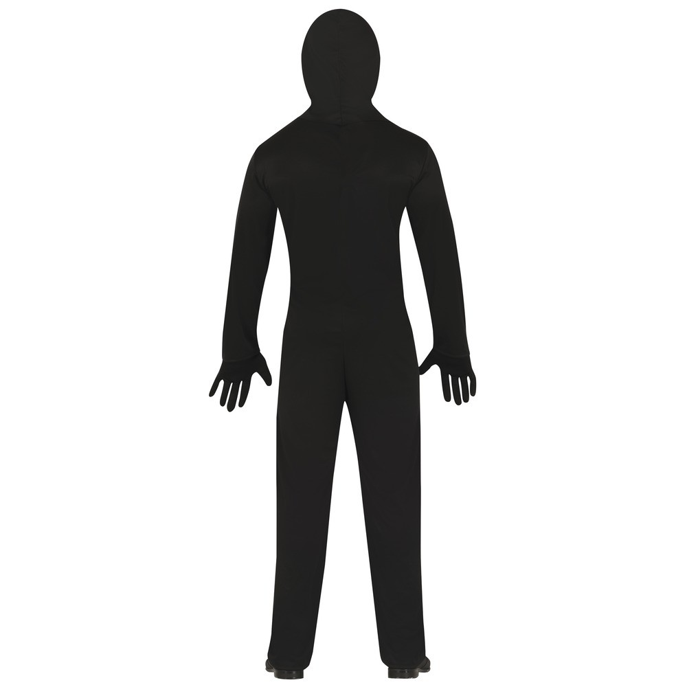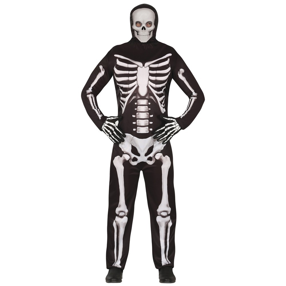 Réf. : ART-084589 Déguisement de squelette humain pour homme, avec combinaison noire à capuche et imprimé osseux saisissant, pour un look effrayant. Gants non inclus. Une silhouette fantomatique prête à hanter les couloirs d'Halloween ou les fêtes les plus macabres. Facile à enfiler, confortable et terriblement efficace. L'élégance morbide d'un revenant sans âge.