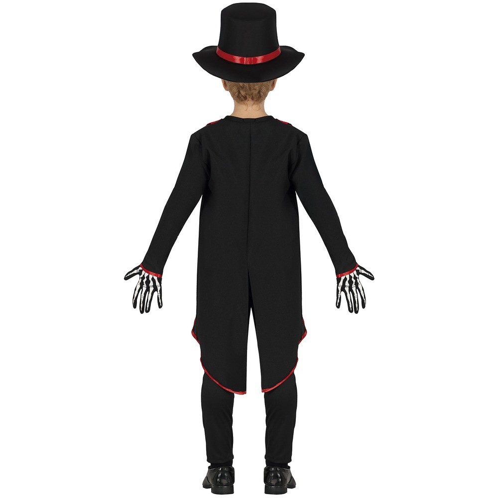 Réf. : ART-084593 Déguisement de squelette dandy pour garçon, composé d'une veste queue-de-pie noire à col rouge, d'une combinaison imprimée d'un squelette blanc, et d'un chapeau haut-de-forme orné d'un crâne pour un look effroyablement élégant. Sceptre non inclus. Ce costume évoque un maître des ténèbres, entre cérémonie macabre et style victorien. Idéal pour un Halloween raffiné... et terrifiant.