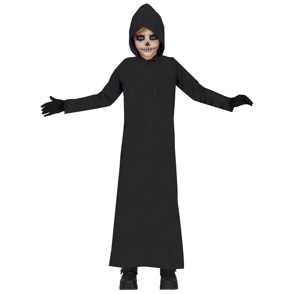 Réf. : ART-084602 Déguisement enfant comportant uniquement une longue tunique noire à capuche afin de s'envelopper de mystère. Paire de gants non inclus. Idéale pour incarner un moine obscur, une ombre funeste ou la faucheuse elle-même, elle offre une silhouette saisissante et inquiétante. Son tissu fluide et sa coupe ample garantissent confort et effet dramatique. Parfaite pour Halloween ou une soirée déguisée ténébreuse.