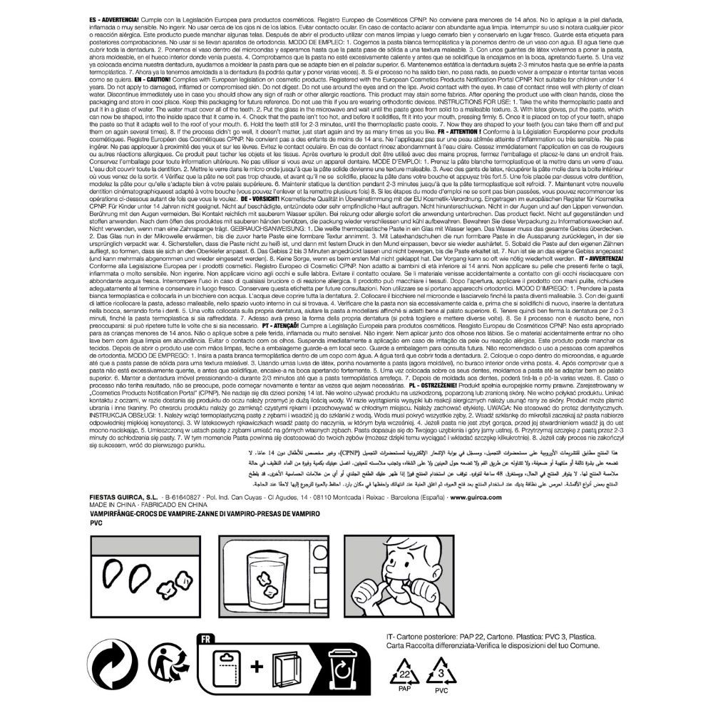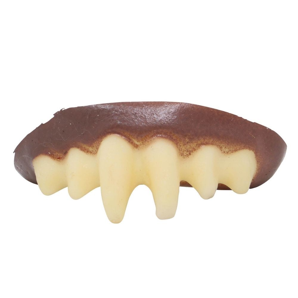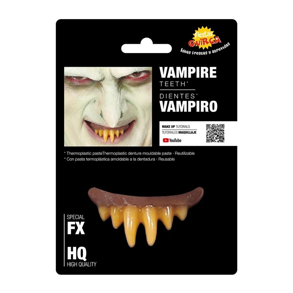 Réf. : ART-084326 Dentier réutilisable souple de vampire pour adulte, avec canines pointues et jaunies, pour accessoiriser un déguisement. L'application des dents est facile grâce aux pastilles thermoplastiques incluses, à chauffer dans de l'eau chaude. Confortable à porter, il transforme votre sourire en arme mortelle et complète à merveille vos maquillages d'Halloween ou vos rôles de créature nocturne...