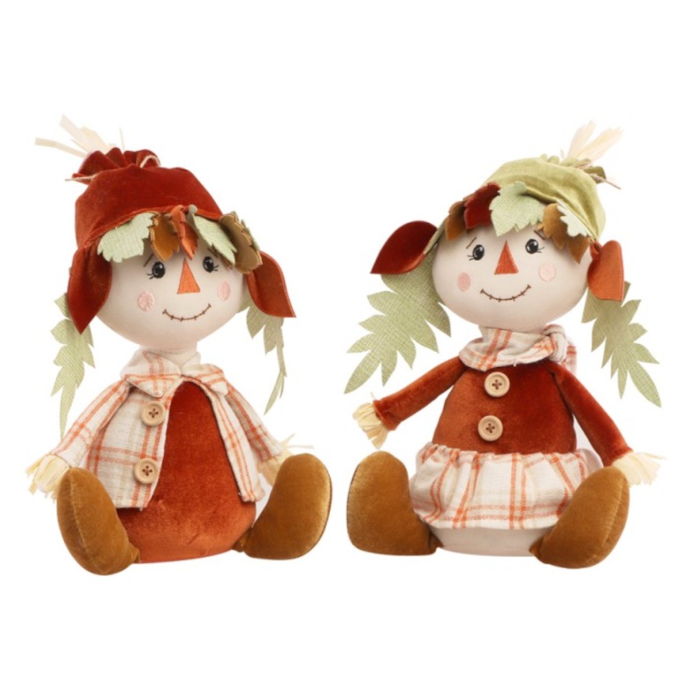 Réf. : ART-084633 Épouvantail en tissu assis nommé Leafy (feuillu) de 30 cm de hauteur. Avec sa tenue aux couleurs automnales, il est parfait pour apporter une touche douce et élégante à votre décoration. À disposer sur une table, une étagère ou un buffet avec une décoration automnale, cet épouvantail séduira autant les plus jeunes que les plus anciens. 2 modèles différents en fonction de nos stocks disponibles