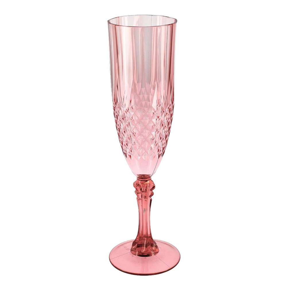 Réf. : ART-083528 Flûte réutilisable couleur rose, au look rétro chic, pour dresser une table étincelante lors de festivités. Contenance : 22 cl. Conçu en plastique robuste, résistant au lave-vaisselle, cette vaisselle est idéale pour une réception responsable et sans compromis sur le design. Sa silhouette raffinée et ses moulures façon pointe de diamant renforce l'aspect précieux et élégant. Idéal pour les vins effervescents : champagne, crémants et vins pétillants.