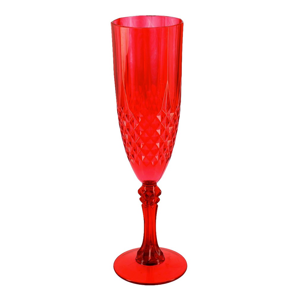 Réf. : ART-083548 Flûte réutilisable couleur rouge, au look rétro chic, pour dresser une table étincelante lors de festivités. Contenance : 22 cl. Conçu en plastique robuste, résistant au lave-vaisselle, cette vaisselle est idéale pour une réception responsable et sans compromis sur le design. Sa silhouette raffinée et ses moulures façon pointe de diamant renforce l'aspect précieux et élégant. Idéal pour les vins effervescents : champagne, crémants et vins pétillants.