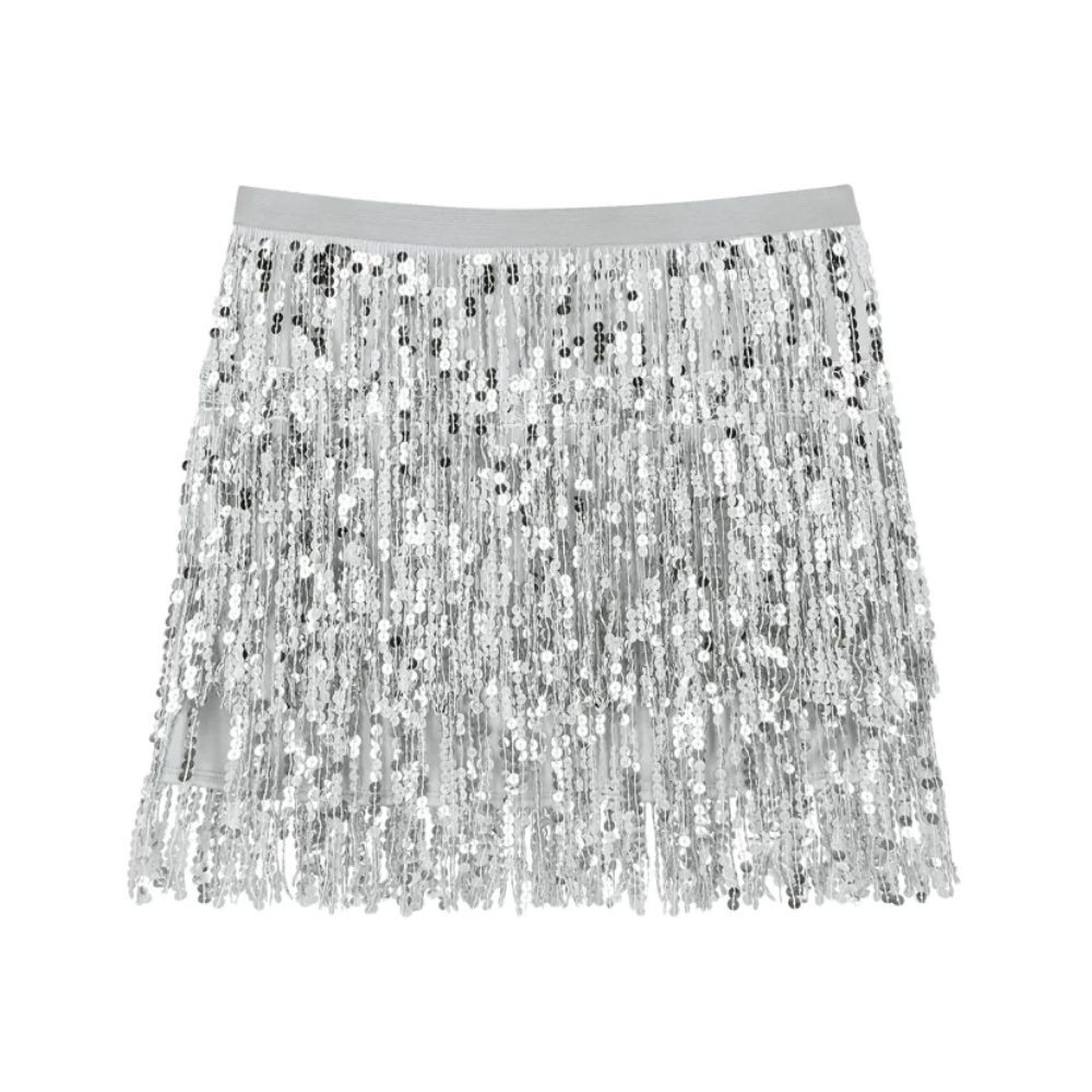 JUPE À FRANGES FESTIVE SEQUINS ARGENT FEMME