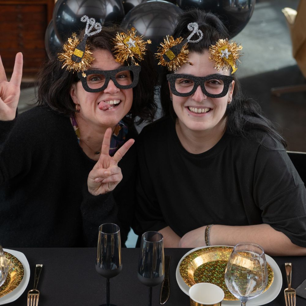 Réf. : ART-085777 Lunettes à ressorts pour adulte pour faire pétiller votre soirée du 31 décembre. Originales et festives, elles arborent une monture noir pailleté orné d'une flûte et d'une bouteille de champagne, agrémentées de pompons scintillants et d'étoiles. Idéales pour le Nouvel An ou toute fête chic, elles ajoutent humour, élégance et éclat à votre look de célébration.
