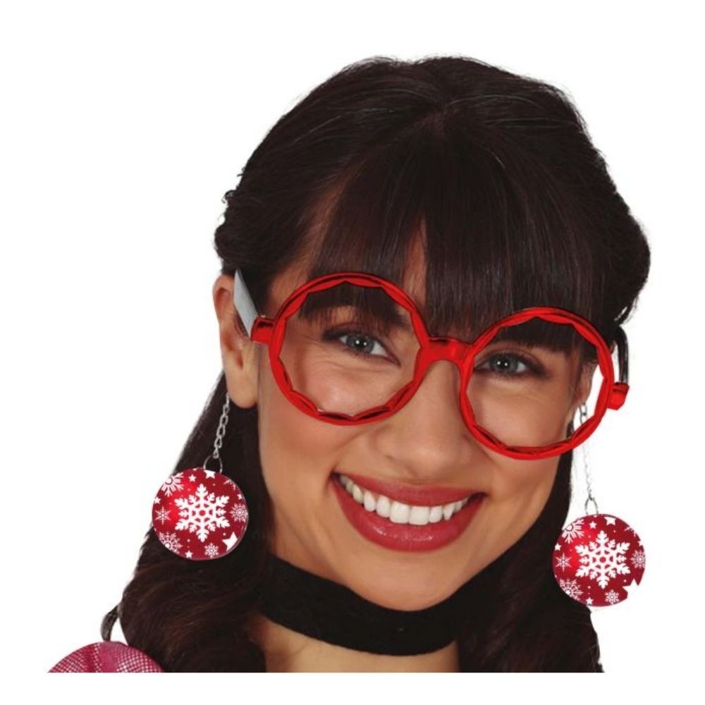 Réf. : ART-085655 Monture de lunettes fantaisie pour adulte, décorée d'un cadre rouge scintillant et ornée de pendants en forme de boules de Noël rouges à motifs flocons. Un accessoire original et festif, idéal pour illuminer vos soirées de fin d'année et apporter une touche d'humour et de magie à vos tenues.